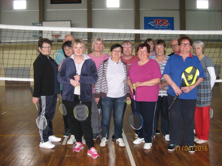 wir sind die Neuen, die Federballspieler der SG Ventschow e.V. Seit dem 1. Februar 2016 spielen 12 Frauen und 2 Männer in der wieder ins Leben gerufenen Sektion Federball. Unsere Altersstruktur ist breit gefächert, wir sind zwischen 55 und 72 Jahre alt. Da die meisten Mitglieder Senioren und somit von den Hallenbenutzungszeiten unabhängig sind, haben wir die Zeit unserer sportlichen Betätigung auf Montag von 15:30 Uhr bis 17:30 Uhr festgesetzt. Vorstellen können wir uns aber auch, in den Wintermonaten ggf. noch eine wöchentliche Spielzeit zu beanspruchen. Wir spielen Federball aus Spaß an der Freud´, versuchen nach der Angabe den Ball übers Netz zu schlagen, ohne irgendwelche Punkte erreichen zu wollen.